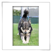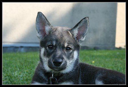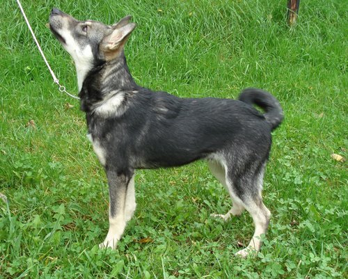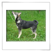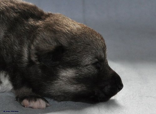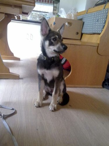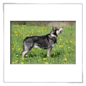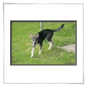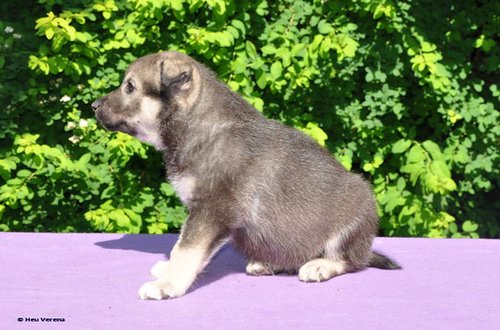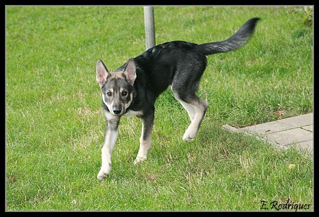 9 1/2 mt. mask.gesamt erscheinung. ansprechender kopf + ausdruck. vorz. pigment, korr. proportionen. typ. winkelungen. korr. haartextur. rute sehr gut angesetzt + getragen. in der bewegung flüssig aber noch etw. unkontrolliert. freundlich + gut präsentiert