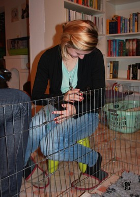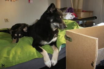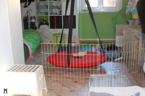 Dieses Zimmer wird anfangs - nach Bedarf - extra beheizt und ist, zumindest die erste Woche, vom Rest des tierischen Rudels abgetrennt. Wenn meine Hündinnen es zulassen, dürfen die anderen schon mal reinschauen.