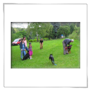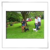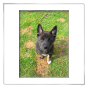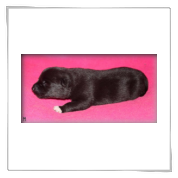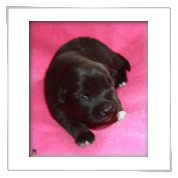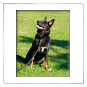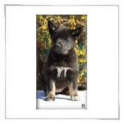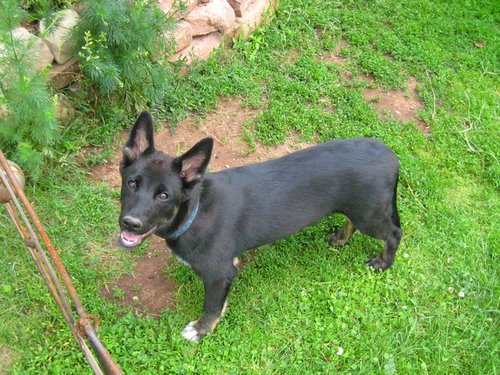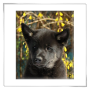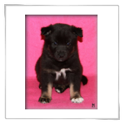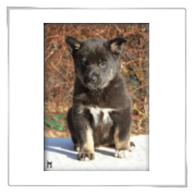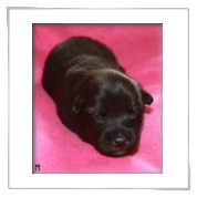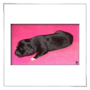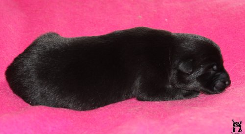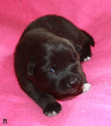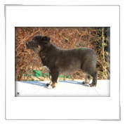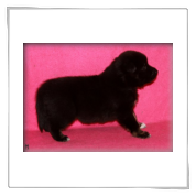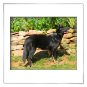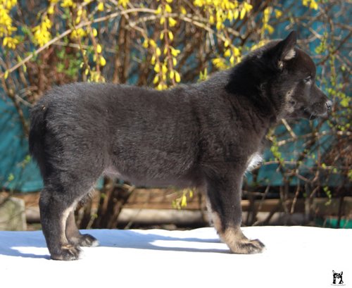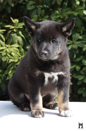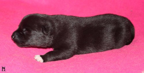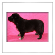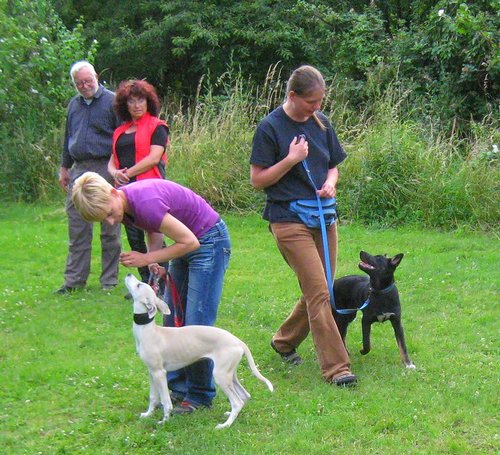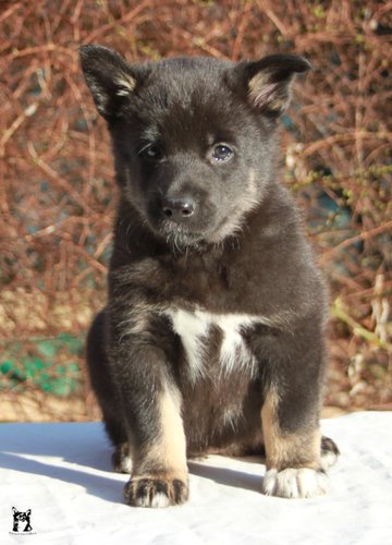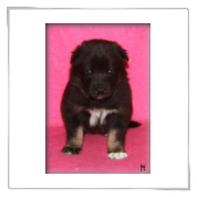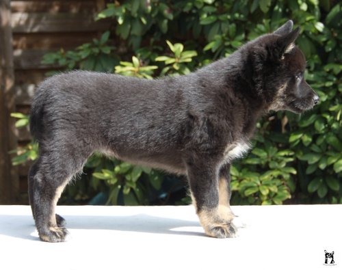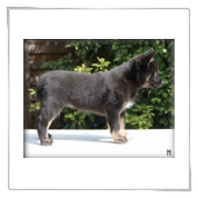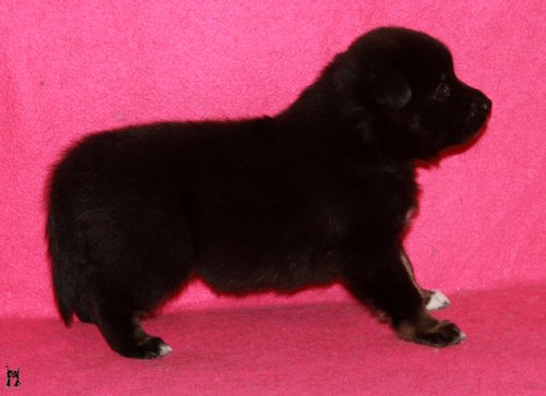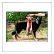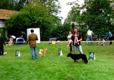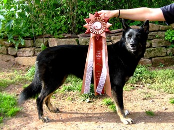 Insgesamt etwas feine Hündin, mit schmalem Kopf, Korrekte Oberlinie, Rute wird deutlich hoch geschwungen, korrekte Winkelung, in der Bewegung fehlt noch Harmonie, etwas vorsichtig aber freundlich
