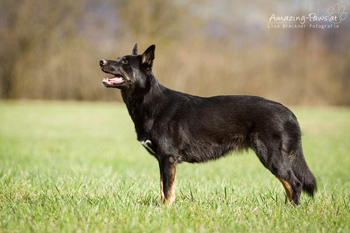 18 Monate alte typvolle Hündin, sehr schöner Kopf, braunes Auge, sehr gute Rückenlinie, prima Winkelungen, leichtfüßig in der Aktion, freundliches Wesen