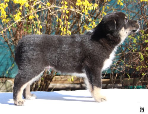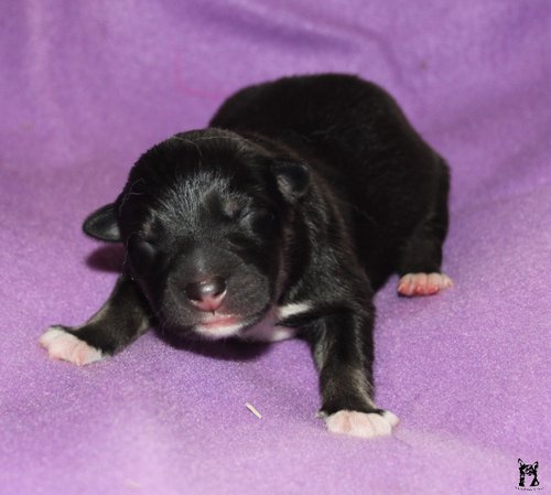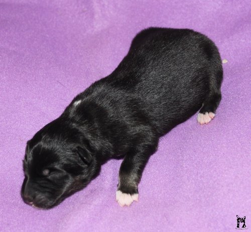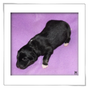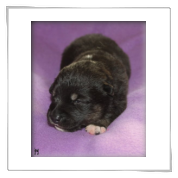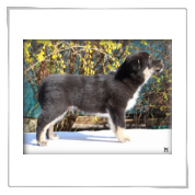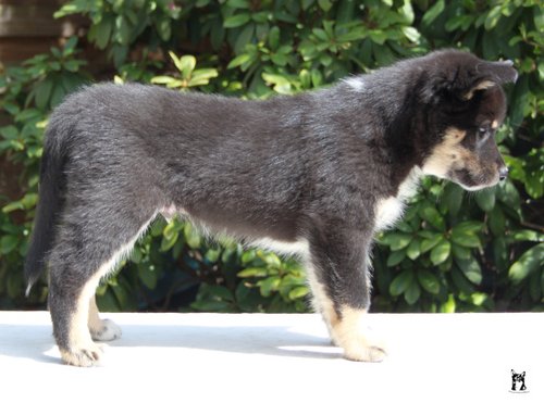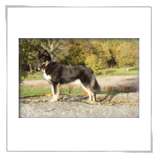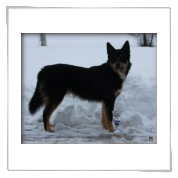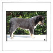 8 Monate alter Rüde; eher grossrahmiges Format; typ. Knochensubstanz; Scherengebiss; typ. geschnittener Kopf + Ausdruck; vorz. in Haar und Farbe; typ Winkelungen; parallel gestellte Läufe; flüssiges Gangwerk; die Rute wird heute etwas zu "lustig" getragen.Richterin: Frau M. Delaquis