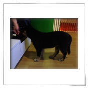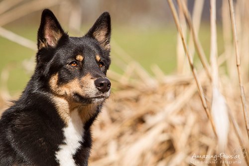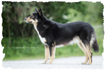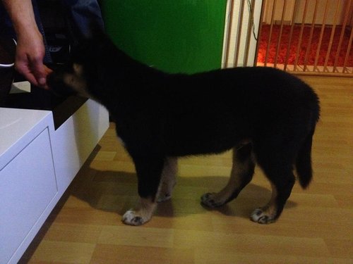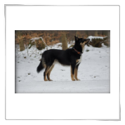 Scherengebiss; ansprechender Jungrüde; vorz. Kopf, jugendlich festes Gebäude; Rute wird deutlich hoch geschwungen; kräftige Gliedmassen mit mässigen Winkelungen; in der Bewegung fehlt noch Harmonie, etwas vorsichtig.