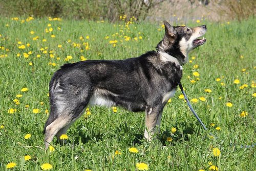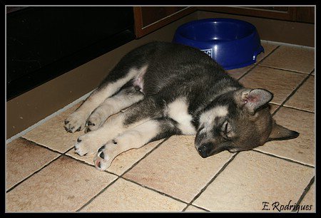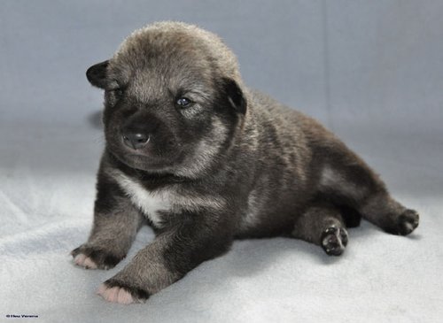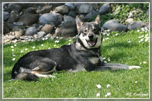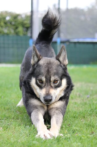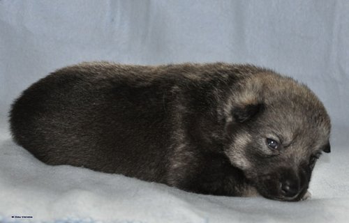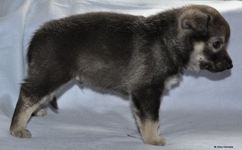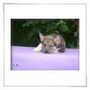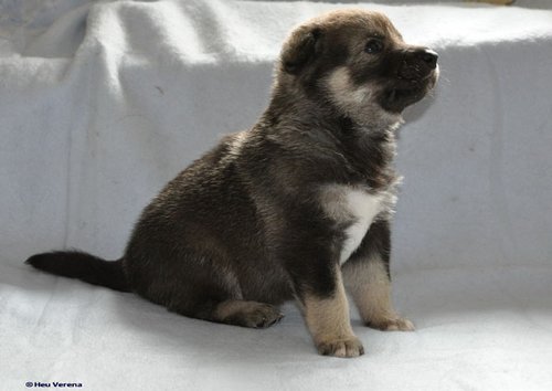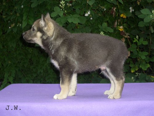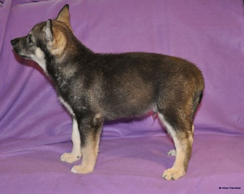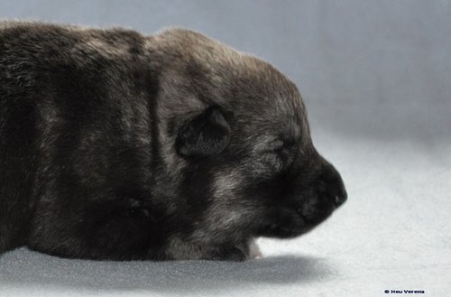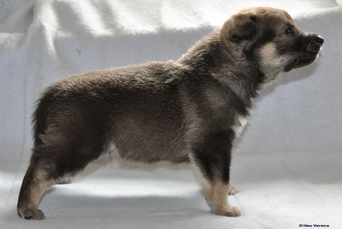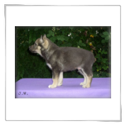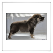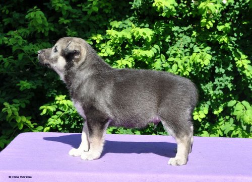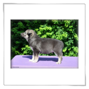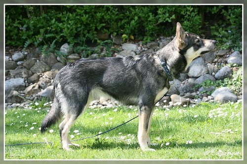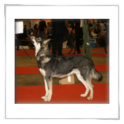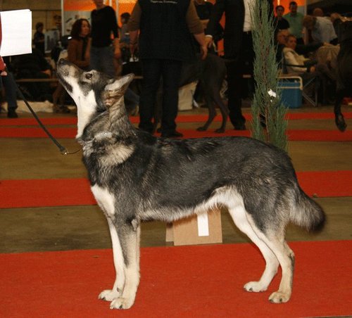 9 1/2 mt., masculine, attractive head and expression, excellent pgment, correct proportions, typical angulations, correct hair, tail very good set and carried, flowing movement, but a little bit uncontrolled, friendly, good presented