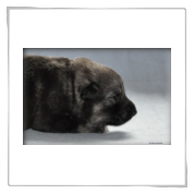 Very promising, BOB Babyexcellent type, very good expression, good teeth and neck, very good, solid body for his age, in the back a little weak