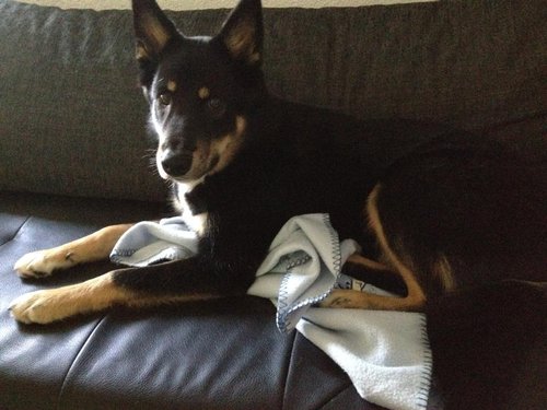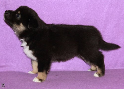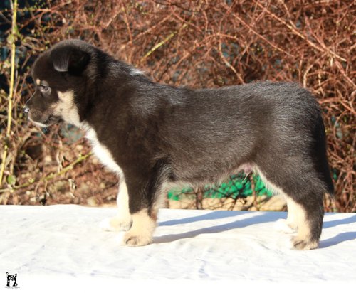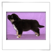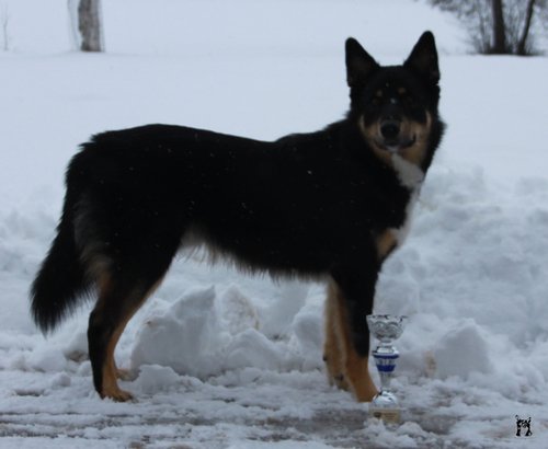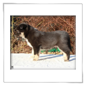 8 Monate alter Rüde; eher grossrahmiges Format; typ. Knochensubstanz; Scherengebiss; typ. geschnittener Kopf + Ausdruck; vorz. in Haar und Farbe; typ Winkelungen; parallel gestellte Läufe; flüssiges Gangwerk; die Rute wird heute etwas zu "lustig" getragen.Richterin: Frau M. Delaquis