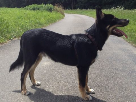 Scherengebiss; ansprechender Jungrüde; vorz. Kopf, jugendlich festes Gebäude; Rute wird deutlich hoch geschwungen; kräftige Gliedmassen mit mässigen Winkelungen; in der Bewegung fehlt noch Harmonie, etwas vorsichtig.