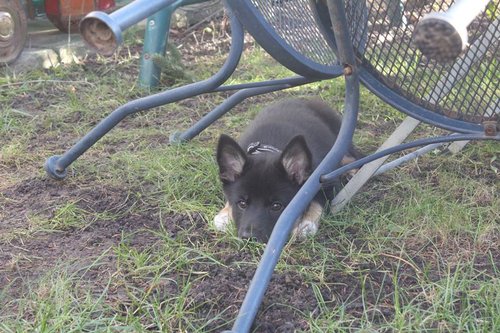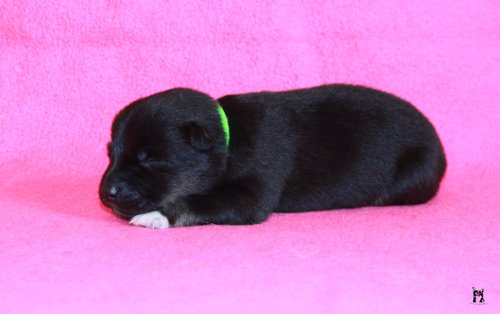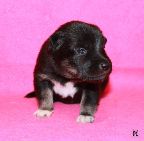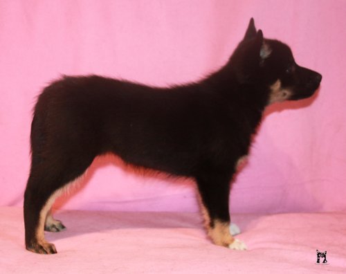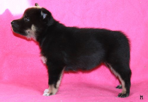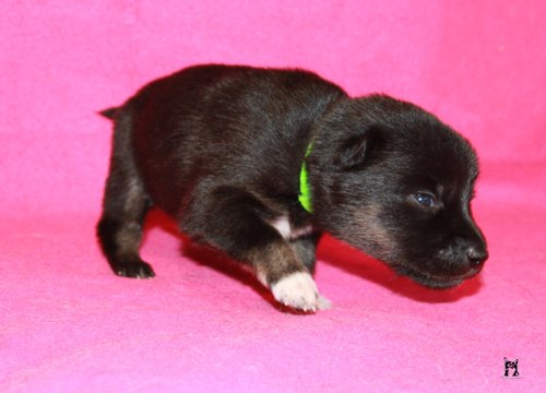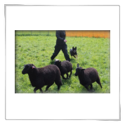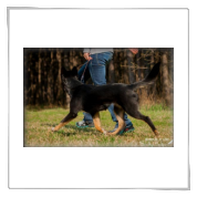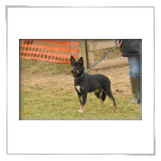11 mon alt, gute größe und Format, kräftiges Scherengebiss, mittelbr. Auge, gut gestellte Ohren, fester Rücken, g. genn. Mell? HH, gute Brusttiefe i.d. Bewegung hinten etwa eng, vorne noch nicht ganz fest, guter Schwung