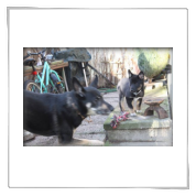 lives in | Vienna with Christine, Schäfer Mix Tinka, Mix Daisy and Border Collie Dope | |