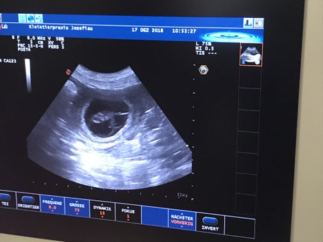 Im Ultraschall konnten wir zumindest 5 kleine Blasen mit schlagenden Herzen gesehen