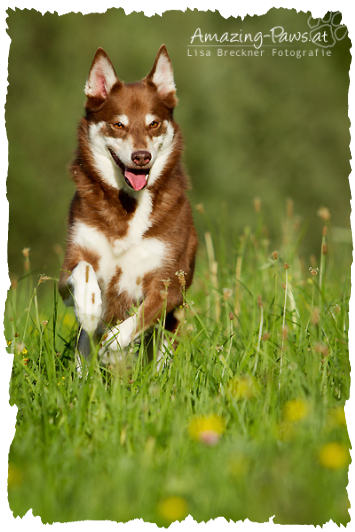 „Sein Einsatz ist unglaublich. Er würde sich zu Tode rennen, gäbe der Meister nicht das Zeichen zu Rast. Er stöbert die zerstreuten Rene bei Wind und Wetter, Nebel und Schneetreiben unter den härtesten Bedingungen auf, kein Tier entgehr seiner feinen Witterung, seinem scharfen Blick, seiner unbestechlichen Aufmerksamkeit. Durch hohen Pulverschnee jagt er dahin wie ein Pfeil, wühlt sich durch riesige Schneewehen, holt ausbrechende Tiere zurück. Schnee und Eisklumpen im Fell, saust er wie ein Schemen bald durch wirbelnde Flocken, bald über blankgefegtes Eis, wachsam, unermüdlich, mit drohendem Gebell. Er ist ein Wunder an Einsatz, Arbeitskraft, Ausdauer und Zähigkeit und immer von mitreißender Begeisterung...“